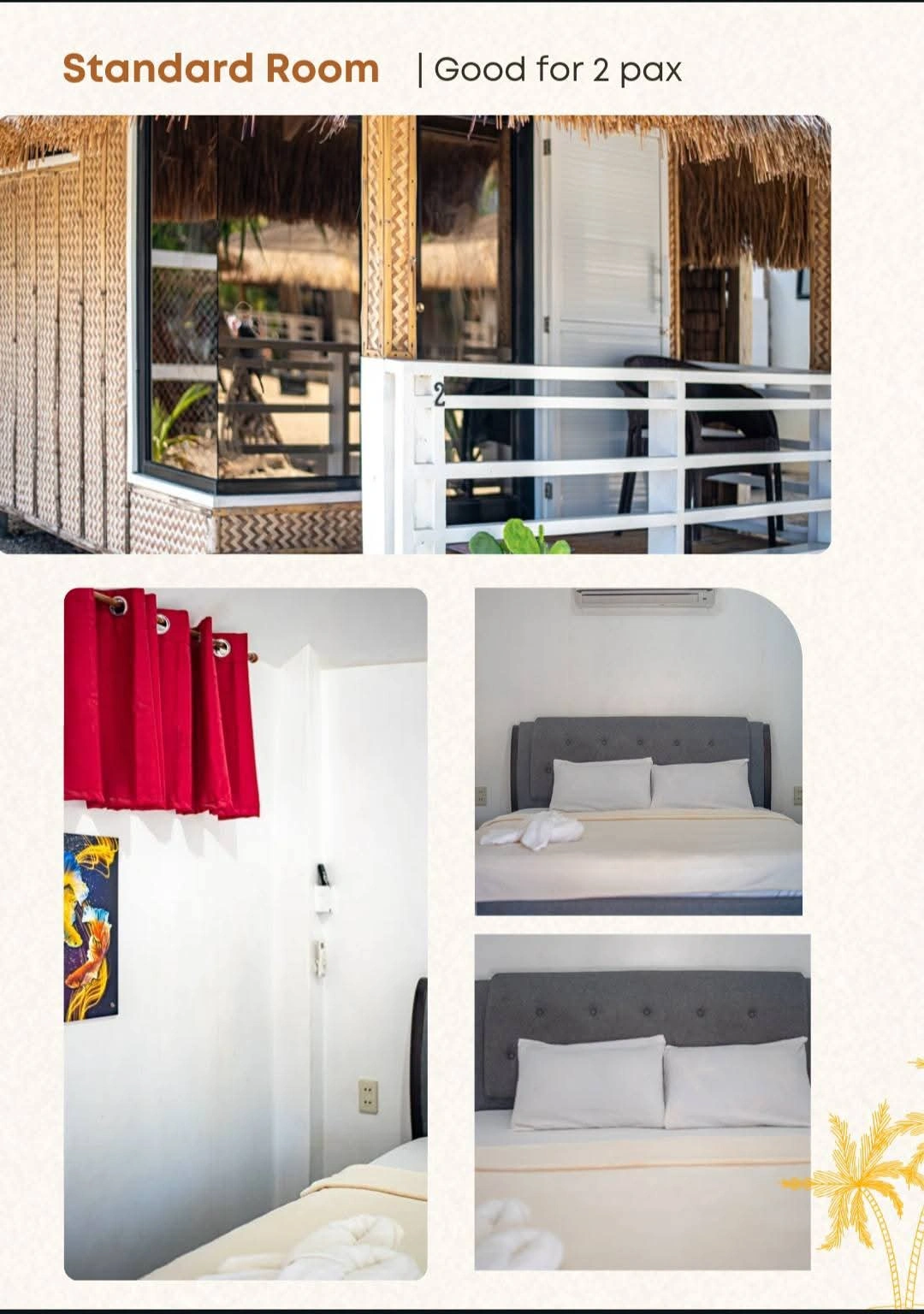 Perfect for travelers who value comfort and affordability, our Standard Room offers a cozy and relaxing place to rest after a day of seaside adventures. Thoughtfully designed with comfortable beds, fresh linens, and a calming beach-inspired atmosphere, this room provides everything you need for a pleasant stay. Guests enjoy access to a clean and well-maintained shared bathroom, making it an ideal choice for solo travelers, backpackers, or budget-friendly vacations without sacrificing the quality of your Dreamshore experience.